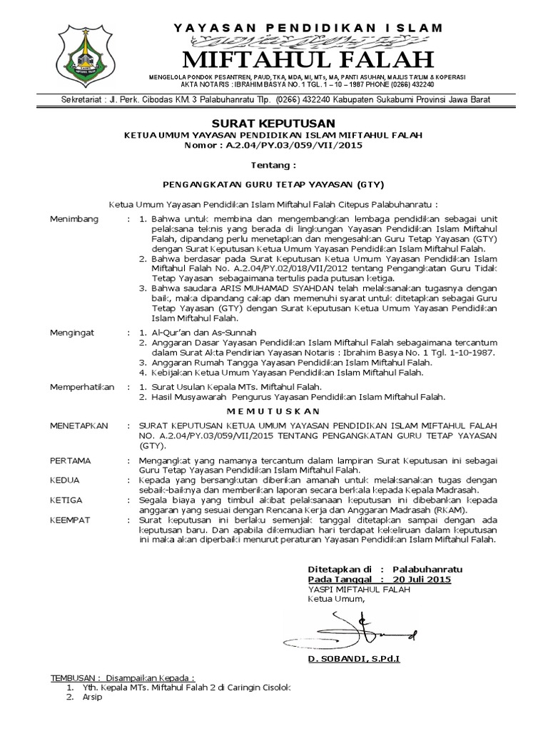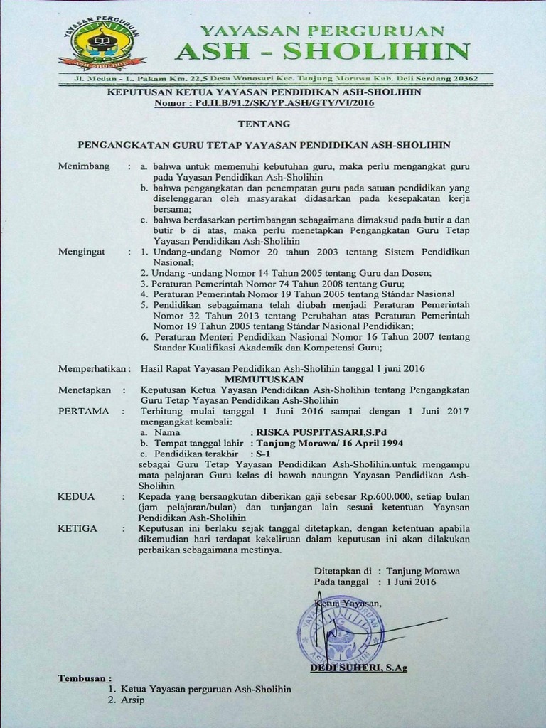 0 4 2 sk yayasan pak heri. Contoh format sk pengangkatan guru tetap/tenaga honor yayasan tk/kb 2018 pada postingan kali ini, admin ingin berbagi informasi mengenai contoh format sk pengangkatan guru tetap/honor yayasan tk/kb seperti yang ada di sekolah kami. Contoh kop surat yayasan sekolah picture published and published by gambarin.us that preserved inside our collection. Contoh sk guru tetap yayasan ini dibuat dalam format word atau doc sehingga memungkinkan bapakibu guru bisa merubahnya sesuai dengan keadaan dan kebutuhan madrasah bapakibu masing masing. Contoh surat sk pengangkatan pengurus have some pictures that related one another.